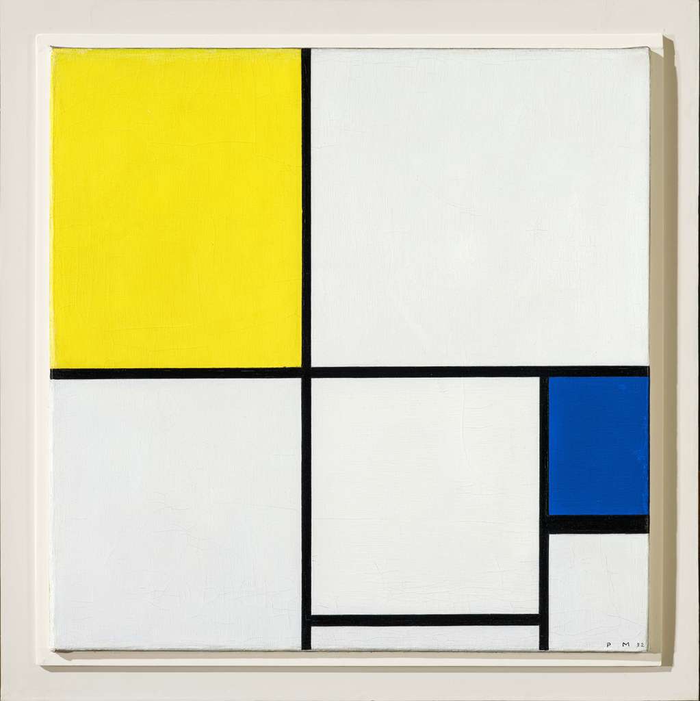 L'œuvre qui nous intéresse pour cet exercice est Composition avec jaune et bleu, un tableau de Piet Mondrian daté de 1932.